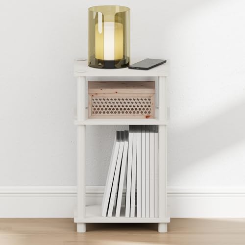 Furinno JUST Night Stand, 3-Tier Turn-N-Tube Nightstand, Toolless Bedside Table, End Table, Side Table with Open Storage for Bedroom, Living Room, White