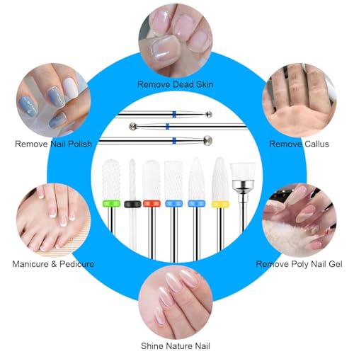 URAQT Ceramic Nail Drill Bits Sets, 10 pcs Electric Nail Drill Bits Kit 3/32", Professional Cuticle Polishing Bits for Acrylic Gel Nails, Electric Nail Files Manicure Pedicure Drill Tool